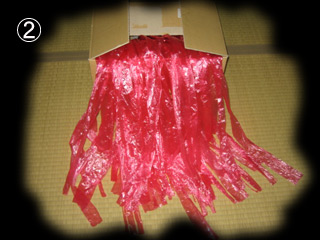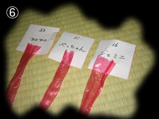 | 参加者53名の名前のついたひも作成! | 箱に入れて引っ張ってもらうことに・・ |