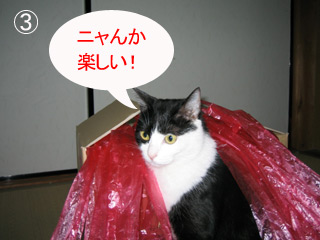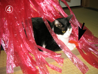 | ミルひも気に入ったニャ。。 | 一つ引っ張り出した模様。。 |